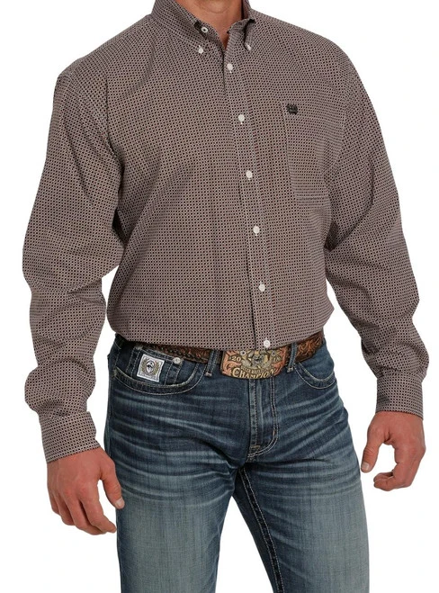 Cinch Geo Print Button Down Long Sleeve Shirt has a neat pattern in handsome black and brown shades that are so versatile. This button down men’s Western shirt has the Cinch Classic Fit that’s roomy and comfortable for riding and everyday wear. The Geo Print Western performance shirt for men features premium grade cotton that is strong and smooth to the touch.