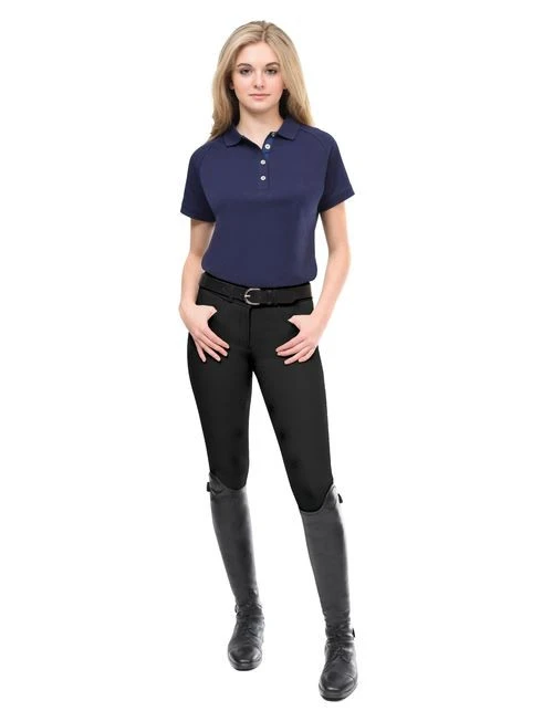 The Ovation Bellissima II has a silicone print full seat that gives saddle grip while staying soft and flexible. The new Flex System at the lower leg ensures an ideal fit under your riding boots or chaps. The Bellissima’s performance tech fabric is dirt and hair repellent, abrasion resistant, and has UPF 50+ sun protection. Ovation Bellissima II GripTec Full Seat Breech also features FreshLock antimicrobial technology to resist odor formation. Ladies silicone grip full seat breeches in several colors offer outstanding performance and comfort at a very affordable price.