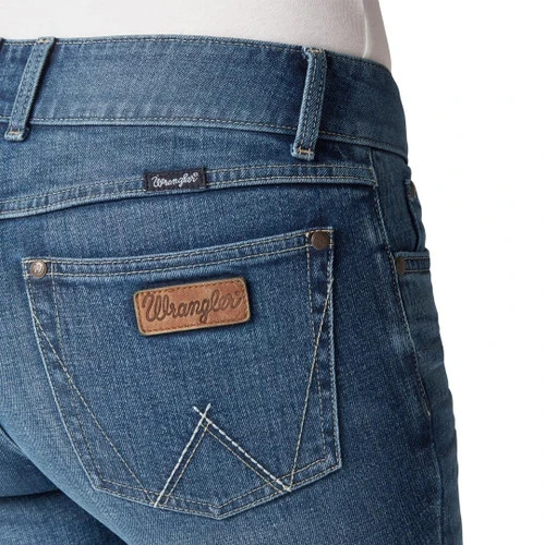 Women love the Wrangler Retro Mae fit that is flattering as well as comfortable. The medium/dark Megan wash is enhanced with whiskering and sanding. Low key Wrangler W stitching on the back pockets and a leather logo tag remind you that your Retro Mae Jeans are authentic Western wear for women who ride. If you’re not already a fan of the Wrangler Retro Mae, try a pair of these great-fitting jeans in the new Megan wash and enjoy tug-free, fuss-free comfort all day.